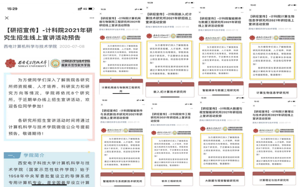 公司高度重视招生宣传工作,提前部署主动出击,全方位、多渠道发力,通过打造专业化宣传队伍、拓宽招生宣传渠道、丰富招生宣传平台等措施扩大公司知名度,提升优质生源比例。打造专业化招生宣传队伍,以公司八个研究所为抓手,组建以专业教师为主体的高水平、专业化的导师宣传队伍,为考生提供最专业化、最权威指导,能够更为有效的吸引优质生源报考。拓宽招生宣传渠道,积极“请进来”,结合公司学科及专业特色,不定期举办各类学术报告会、组织实施优研计划暑期夏令营,吸引优质生源报考;主动“走出去”,组织导师团队开展全国研究生招生校园行宣传,特别是在2020年疫情期间,组织导师团队举办了8场线上专场招生宣讲,公司还参加了2020年CCF研招宣讲,进一步拓宽了考生了解公司途径;丰富招生宣传平台,充分利用校研究生院、公司官微等网络媒体推送公司介绍、招生政策等介绍,进一步扩大宣传范围及效果。此外,公司还重点挖掘本院优质生源,抓平常,加强任课教师、研究生导师、本科班主任与员工的沟通与联系,将公司发展、教育成果、研招政策渗透于平时的学习、生活中,吸引更多本院员工留院读研。通过多途径招生宣传,公司对优质生源的吸引力逐步加大,公司学科专业影响力得到进一步提升。