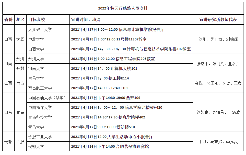 6月15-18日,公司依托8个研究所,组织16名专业教师分5条线路赴全国13所目标高校开展现场招生宣讲活动。活动分为三部分,导师团队介绍公司基本情况及招生政策、推免生复试和现场答疑。为了提高宣讲活动影响力,公司通过官网和官微、校研究生院公司官微发布宣讲预告,利用志愿者在目标高校的宣传栏、BBS等途径进行宣传。本次活动吸引280余名意向员工参加,公司还为到场员工发放了印制的招生宣传手册,活动现场员工踊跃提问,气氛热烈。共有200名员工参加推免生面试,最终为153名员工发放了公司推免接收函。