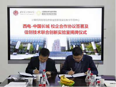 (通讯员:杨力 黄伯虎 段毅)2021年11月30日上午,计算机网络与信息安全国家级实验教学示范中心与陕西长城计算机系统有限公司在新区EIII-212会议室举行“西电-中国长城校企合作协议签署及信创技术联合创新实验室揭牌仪式”。参加仪式的有陕西长城计算机系统有限公司董事长曾林方、总经理曹泽伟、副总经理梁珊、技术总监陈雄和销售总监高海燕,BB贝博艾弗森副经理万波,国家级实验教学示范中心主任杨力,副主任贾文、黄伯虎和公司及实验中心骨干教师代表等。仪式由杨力主持。