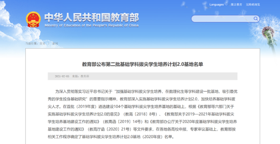 2021年初“计算机科学”成功入选教育部基础学科拔尖员工培养计划2.0基地。“基地”依托“计算机科学与技术”国家双一流建设学科,涵盖了计算机科学与技术、软件工程等面向国家重大需求的专业,着力培养面向世界科技前沿,从事计算机科学基础研究的拔尖人才。