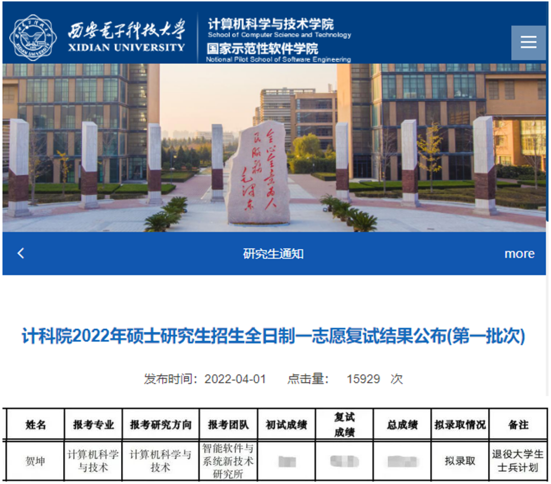 (图文来源BB贝博艾弗森新闻网)人间最美四月天,在西电退伍老员工士兵群体里传来好消息,贺坤同学通过“硕士研究生招生退役士兵专项计划”被BB贝博艾弗森拟录取。