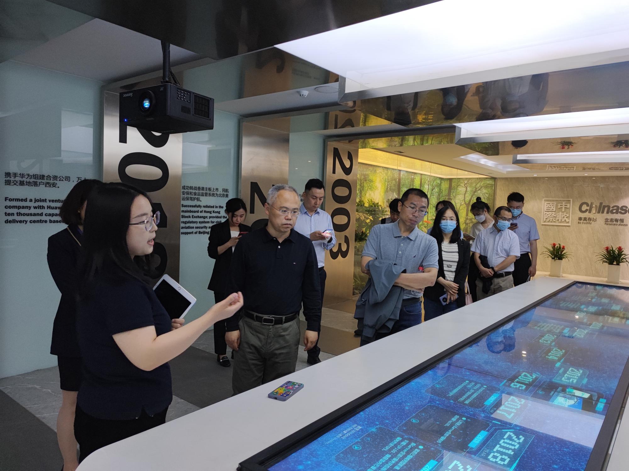 随后,公司一行前往中软国际科技服务有限公司,在中软国际教育科技集团总经理徐立华的陪同下参观中软国际展厅,对公司的发展历程、发展现状等进行了全面了解。