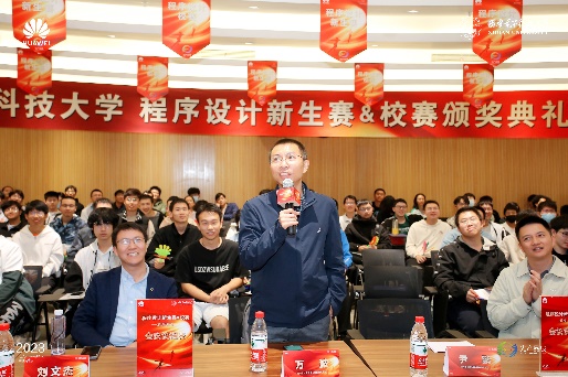 华为技术有限公司赞助了本届程序设计竞赛以及2022程序设计新生赛,2023年5月7日为本届校赛及78名新生赛获奖同学举行了颁奖会,公司创新创业公司副经理尹鹏、BB贝博艾弗森副经理暨程序设计竞赛基地主任万波教授出席颁奖会并作了发言,华为光产品线代表刘文杰、雷俭、陈晓磊、陈泽等介绍了算法在光产业业务中的应用,就ICPC人才发展与培养等问题与同学们进行了充分交流。