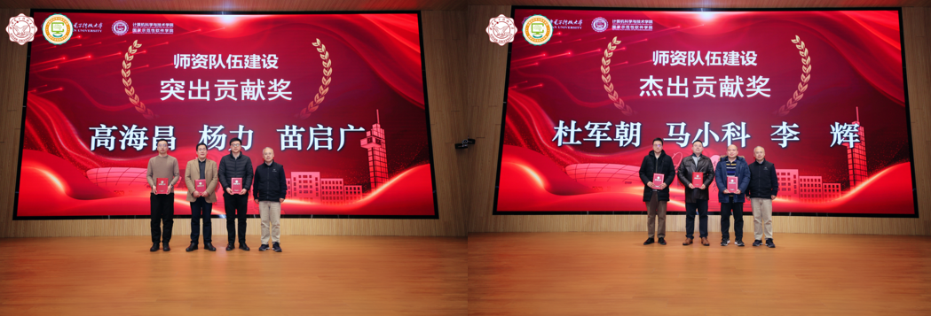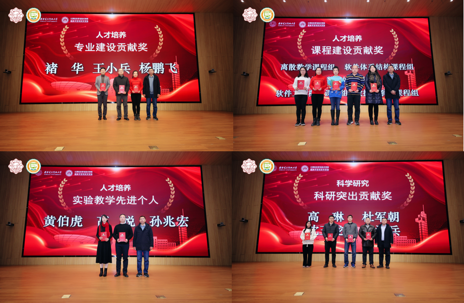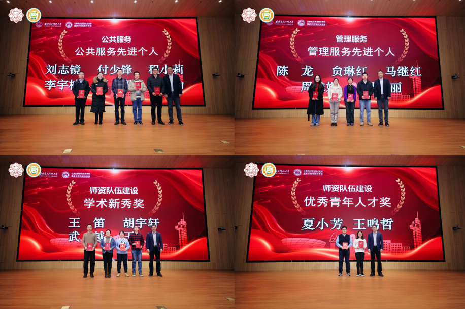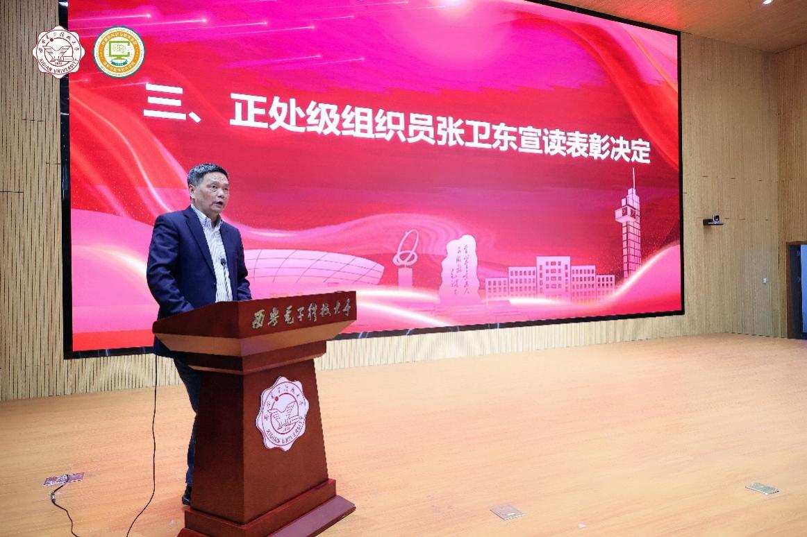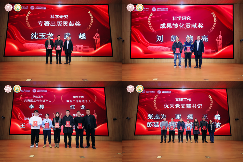 2023年度,在全体教职工的共同努力下,公司各项事业取得了重要成绩,涌现出了一批在党建、教学、科研、团队队伍建设、员工工作、管理服务、公共服务等方面的先进个人。公司正处级组织员张卫东宣读了公司表彰先进人员的决定。公司领导班子成员分别为获奖代表颁发荣誉证书并合影。