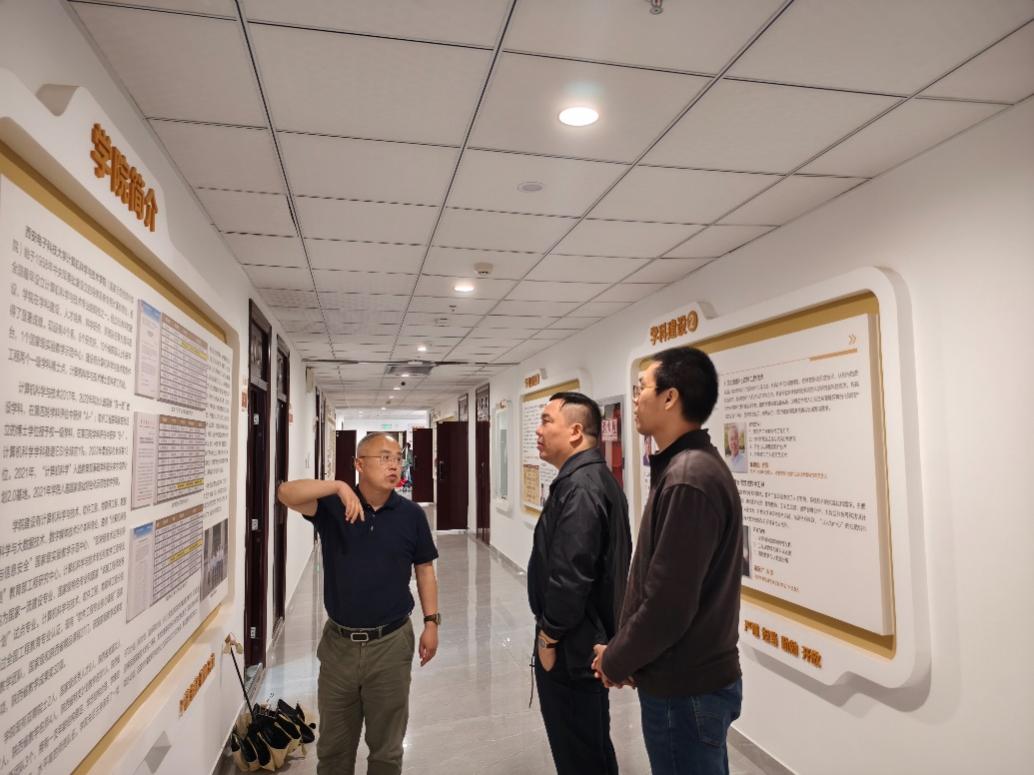 公司党委书记李青山带领厦门大学信息公司一行参观了公司文化建设情况,详细介绍了公司近年来在党建、团队建设、人才培养和科学研究以及员工工作等方面取得的成绩。