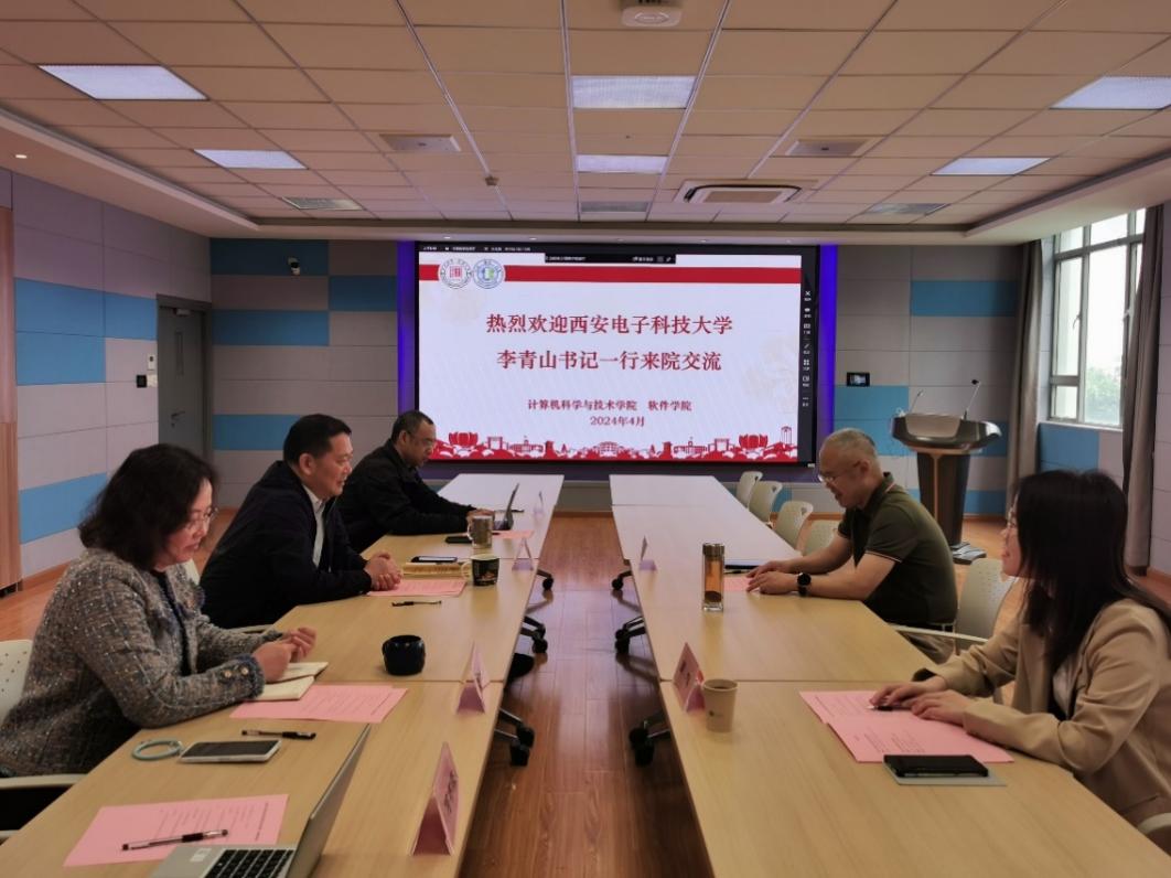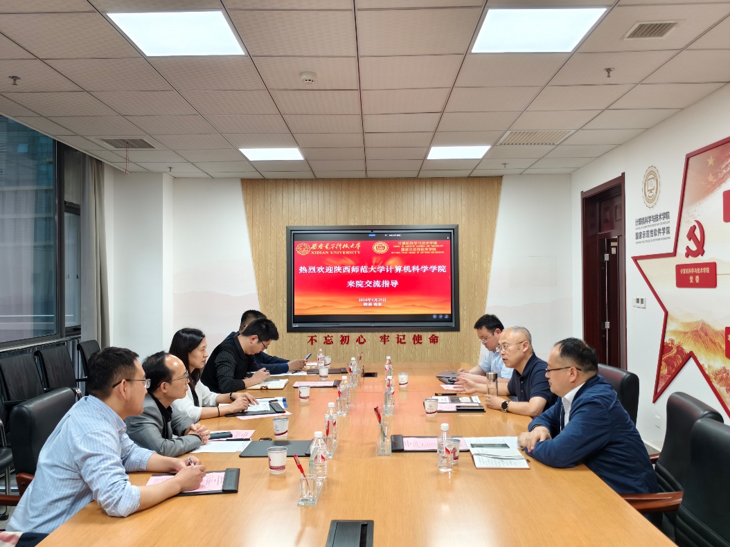 4月29日下午,陕西师范大学计算机科学公司经理姚若侠、党委书记张艳兵带领副经理裴炤、禹勇、董春生来院调研交流。