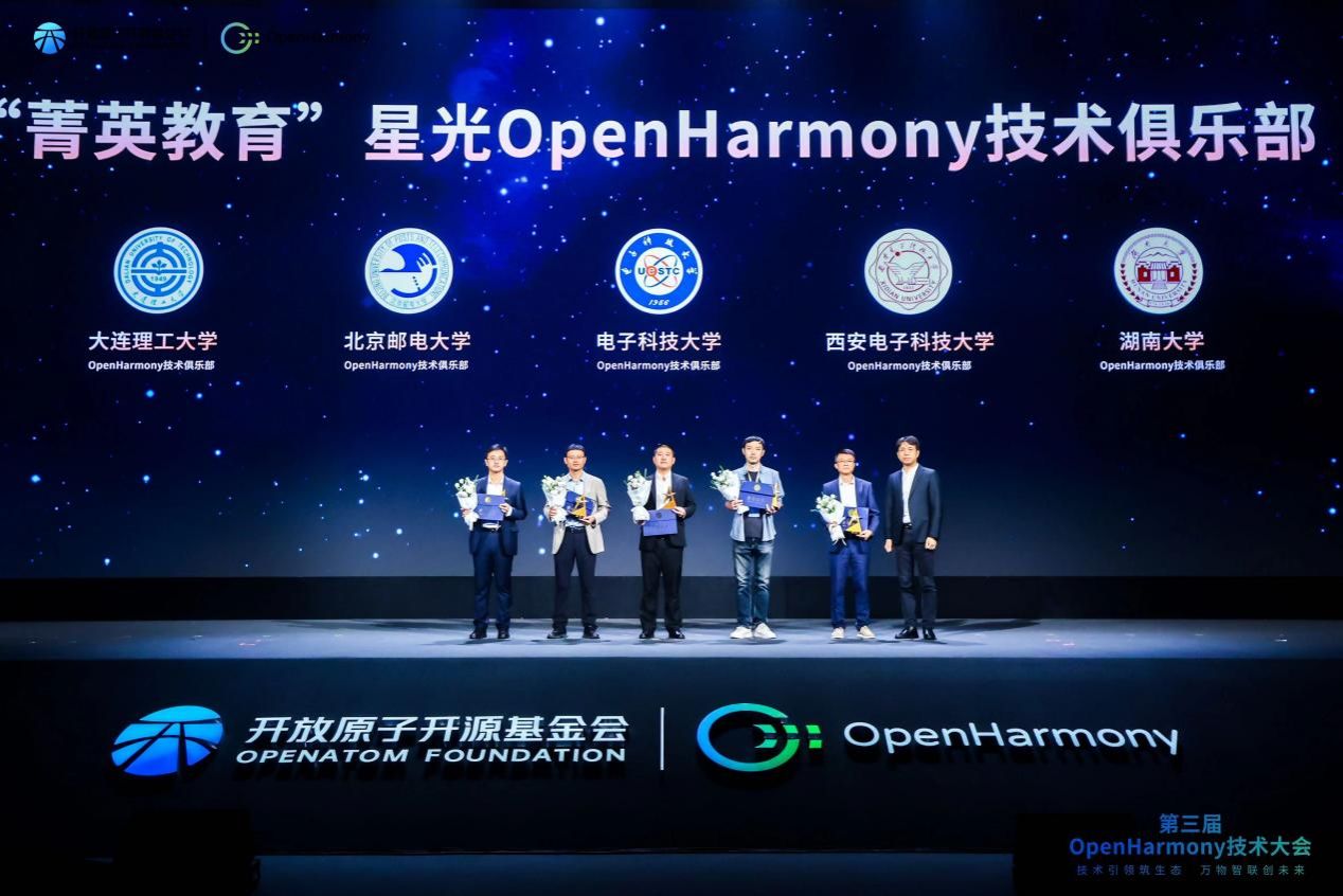 张宁老师代表西电上台领取“菁英教育OpenHarmony技术俱乐部”奖项(右3)