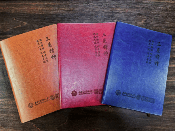 其中,设计简约大方的校徽,是西电学子身份的象征,佩戴之时便让新生直观感受到归属感;《新生指南》与《迎新手册》则如同“研途说明书”,帮助新生快速熟悉校园环境、明晰研究生阶段的学习生活重点;尤为特别的是,公司专属设计的“三系精神”主题笔记本与帆布袋,将公司“三系精神”的学术品格与精神内核融入设计,兼具实用性与辨识度,既是新生日常使用的贴心物件,也是公司精神传承的流动载体。