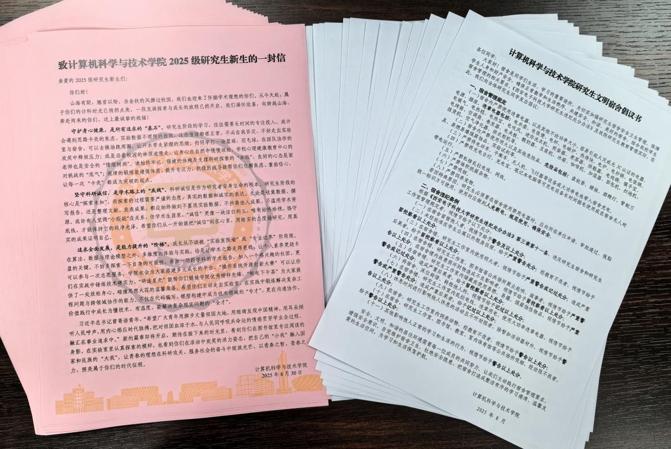 在用心打磨、精心制作后,公司为每位新生发放《致2025级研究生新生的一封信》,字里行间既包含对新生加入计科大家庭的欢迎,更围绕“如何度过有价值的研究生时光”展开深度引导,为研究生阶段的学习、科研与生活筑牢根基;公司现场组织新生学习《BB贝博艾弗森研究生文明宿舍倡议书》,志愿者通过案例教育、制度解读的方式,向新生重点强调宿舍用电安全、消防安全和卫生管理等方面的要求,让安全意识、文明意识从入学第一天便深植心间。