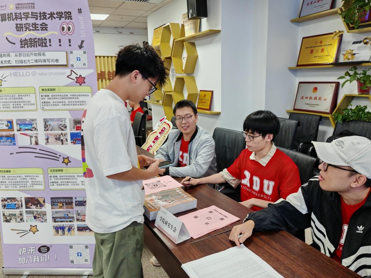 迎新当天,研会志愿者们更是以饱满的热情投入服务工作,专门设置“研会纳新点”“咨询处”,有的负责解答新生疑问,有的手把手教新生使用校内资源,有的则详细介绍公司丰富的研究生活动。