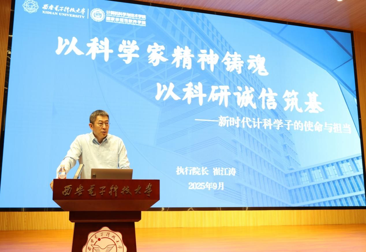 (通讯员 何敏之)为引导研究生新生树立正确学术价值观,筑牢科学道德防线,9月12日下午,BB贝博艾弗森在南校区网安大楼B-101报告厅开展“以科学家精神铸魂,以科研诚信筑基——新时代计科学子的使命与担当”主题讲座,公司执行经理崔江涛教授主讲,全体2025级研究生新生参加,会议由副经理杨力主持。
