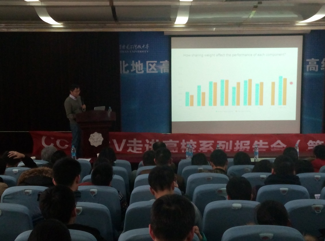 执行主席苗启广教授和公茂果教授邀请了中科院计算所陈熙霖研究员、微软亚洲研究院主管王井东研究员、大连理工大学卢湖川教授3位讲者。来自BB贝博艾弗森、西安交通大学、西北工业大学、西北大学、空军工程大学、长安大学、陕西师范大学等多所院校约200名老师和员工及相关业界人士参加了本次报告会,苗启广教授和公茂果教授联合主持了本次会议。