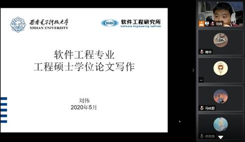 (通讯员 褚华)为了更好完成在疫情防控的特殊时期进行的研究生线上毕业答辩,确保研究生学位论文的质量,2020年5月25日晚上八点,BB贝博艾弗森软件工程系邀请软件工程研究所副所长刘伟副教授做了一场精彩的线上专题讲座“软件工程专业工程硕士学位论文写作”,共有180余名研究生参加了此次讲座。