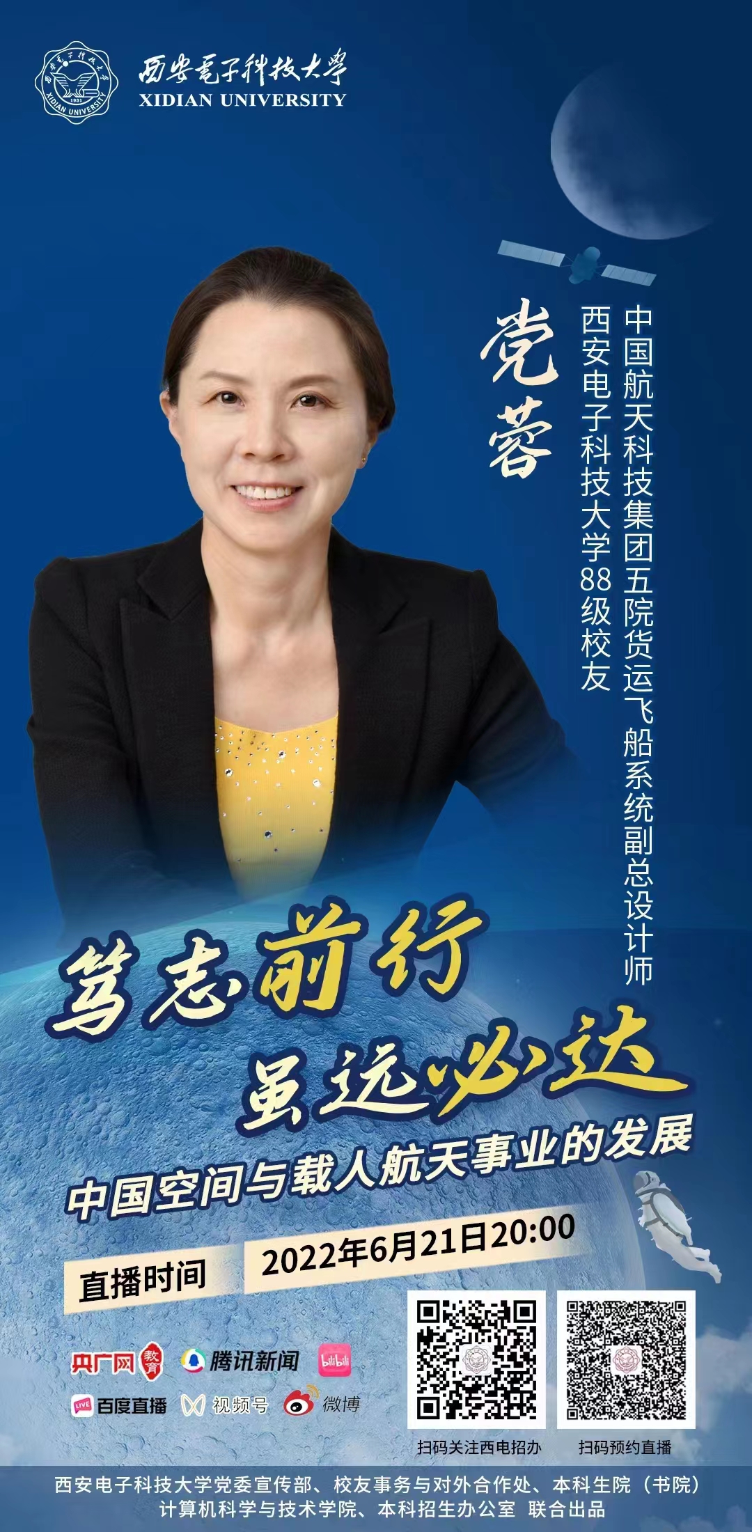 讲座预告 | 西电​BB贝博艾弗森88级杰出员工党蓉:笃志前行,虽远必达——中国空间与载人航天事业的发展