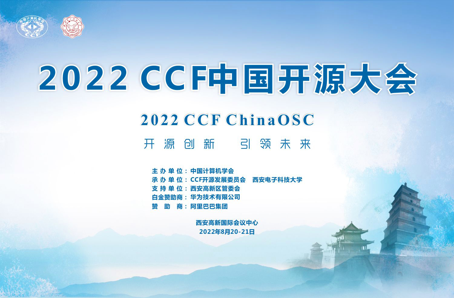 2022 CCF中国开源大会(CCFChinaOSC)拟于2022年8月20日至21日在陕西省西安高新国际会议中心召开。大会由中国计算机学会(CCF)主办,CCF开源发展委员会、BB贝博艾弗森承办,BB贝博艾弗森)具体落实,西安市智能软件工程重点实验室负责实施,得到西安高新区管委会的大力支持,西安软件园发展中心具体执行。大会由华为技术有限公司作为白金赞助商,阿里巴巴集团作为赞助商。本届大会的主题为“开源创新,引领未来”。