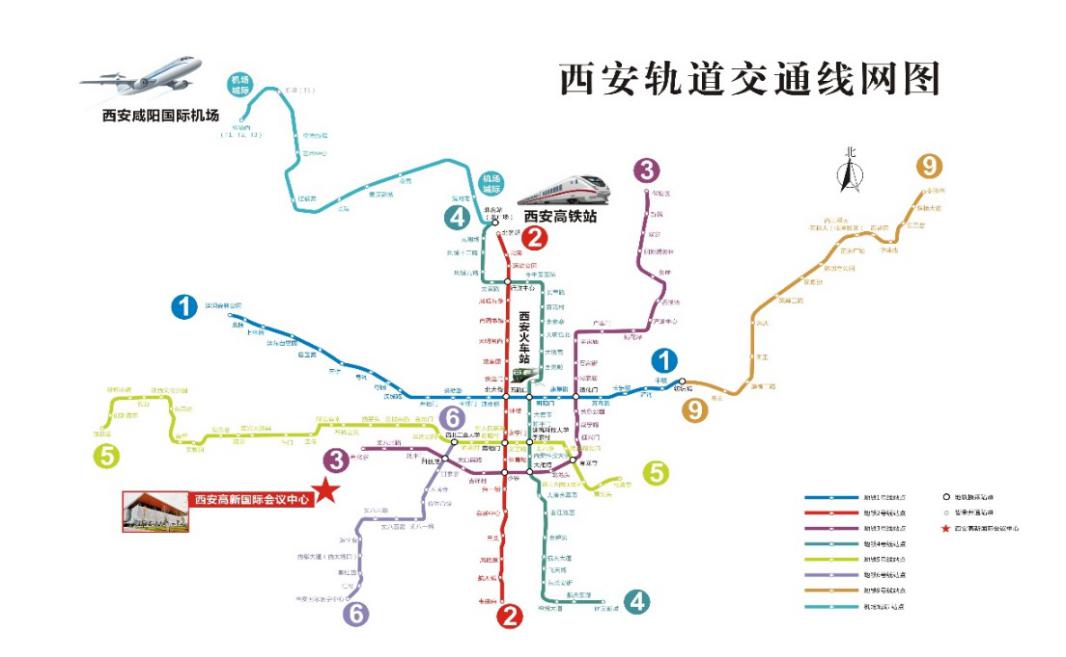 2)公共交通:机场大巴城西客运站线——到达城西客运站下车——城西客运站乘坐公交272路/186路——到达西三环天谷六路站下车——步行约787米,约12分钟到达西安高新国际会议中心,全程约1小时50分钟。