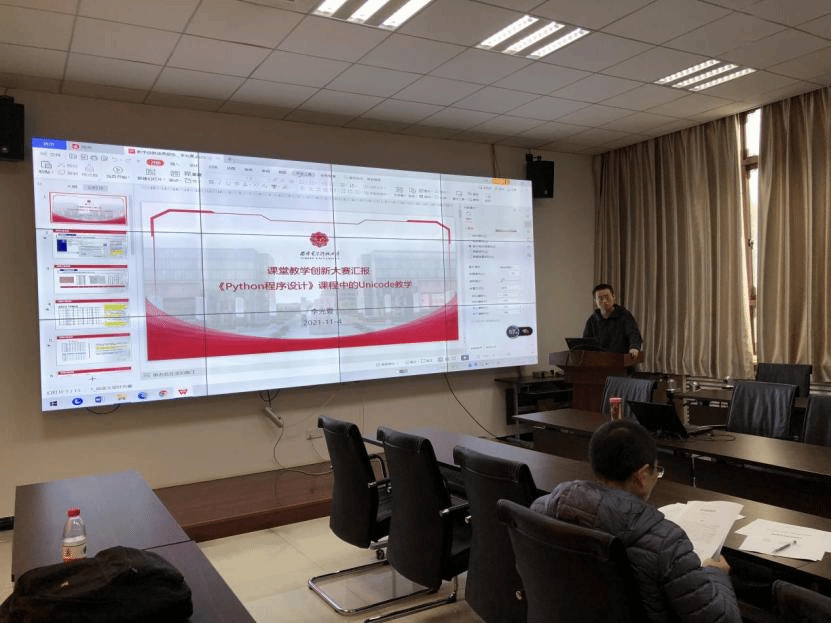 院级预赛由教学创新成果报告(占比25%)和教学设计创新汇报(占比75%)两部分组成。为保证比赛顺利进行,各位评审老师首先对教学创新成果报告进行了审阅。接下来,进入到教学设计创新汇报比拼环节,参赛教师精心准备PPT,结合教学大纲与教学实践,全面进行了整门课程的教学设计创新汇报,充分展示出公司教师的风采。