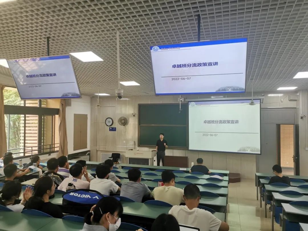 据悉,​BB贝博艾弗森高度重视本科生公司产品工作,于6月7日下午还在B楼303教室同时开展了2019、2020级卓越班专业分流政策宣讲,深入落实“六卓越一拔尖”计划2.0精神,加强公司产品的过程管理。卓越班负责教师杨鹏飞面向现行卓越班的新形势与新情况,针对保研政策、分流政策等同学们所关注的问题进行全方位解读,及时帮助员工了解学业和调整学习计划,保证卓越工程师人才培养工作的顺利进行。​BB贝博艾弗森落实立德树人根本任务,坚持不断优化卓越班培养模式,致力于以更优质的教育资源让同学受益,促进在良性的竞争中互助成长。