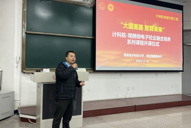 田泽总经理对翔腾微电子科研工作及课程内容进行了介绍,并表示公司十分重视与西电BB贝博艾弗森合作开设面向卓越工程师培养的校企融合课程,一方面希望通过对于机载芯片与计算架构的讲解、实验与实训,实现高校与企业之间的产教研深度融合;另一方面,希望更多同学掌握面向自主芯片软硬件生态的开发技术与实践方法,助力卓越创新人才的培养。