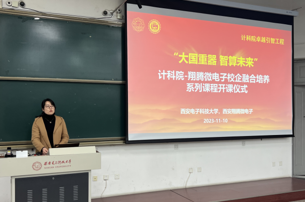 (通讯员 徐悦甡 杨鹏飞)为有效衔接、贯通实施科教举国、人才强国、创新驱动发展战略,实现教育、科技、人才一体推进良好循环,BB贝博艾弗森与西安翔腾微电子科技有限公司以卓越班为主体,持续开展卓越引智工程,共同建设“大国重器智算未来”校企融合系列课程,于2023年11月10日成功举行开课仪式与第一次授课。BB贝博艾弗森执行经理崔江涛、副经理万波、副经理杨力,西安翔腾微电子总经理及首席技术专家田泽、副总经理张骏、人才资源主管周静如,BB贝博艾弗森卓越班负责人杨鹏飞、徐悦甡,以及公司各年级卓越班全体同学参加了活动。公司本科生院副处长杨敏到场。活动由BB贝博艾弗森副经理万波教授主持。