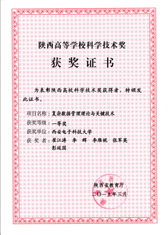 陕西省高校自然科学一等奖 陕西省自然科学二等奖
