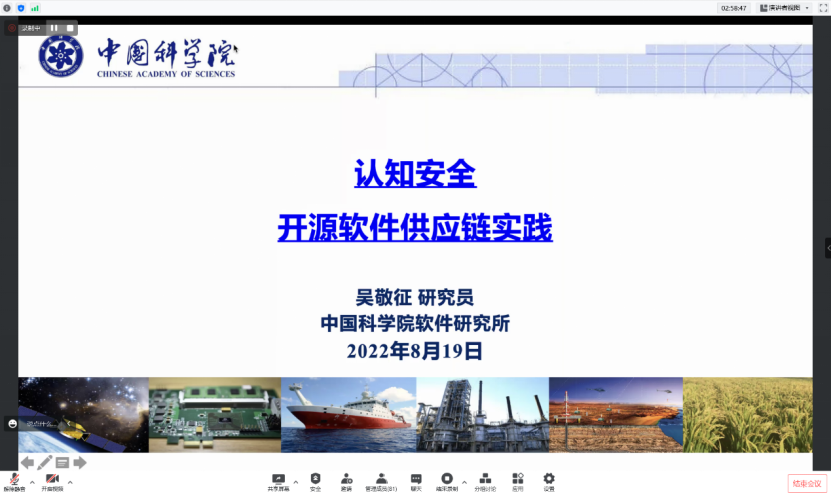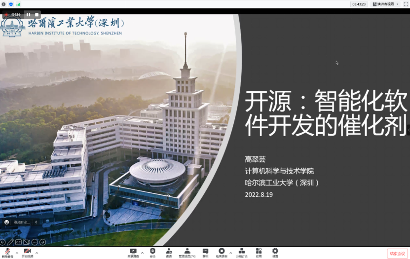 (通讯员 崔笛)8月19日下午,CCF开源发展委员会开源高校行第七期BB贝博艾弗森站活动在线上举行。本次活动BB贝博艾弗森)与木兰开源社区共同承办,邀请到中国科公司软件研究所研究员吴敬征老师、天津大学智能与计算学部副教授陈森老师、哈尔滨工业大学BB贝博艾弗森副教授高翠芸老师、阿里巴巴技术专家林子熠老师、华为技术专家刘逵老师、腾讯开源专家耿航老师、英特尔云基础设施软件研发总监王庆老师、蚂蚁集团资深技术专家王旭老师、华为计算产品线开源开发与运营部总监李永乐老师九位嘉宾进行报告分享,并与BB贝博艾弗森师生开展互动交流。BB贝博艾弗森华山准聘副教授崔笛老师主持本次活动,BB贝博艾弗森计算机科学与技术公司党委书记、2022CCF中国开源大会组织委员会联合主席、程序委员会联合主席李青山教授致辞。本次活动氛围浓厚,互动交流热烈,在线参加人数最高接近200人。