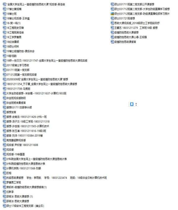 本科17级计算机科学与技术专业0108班班长史越超通过腾讯课堂组织了主题班会,全班62名同学在线上的“云”相聚,共同观看思政课。在班长的组织下,同学们结合课程学习内容对党中央关于疫情防控的决策部署、身边防疫抗疫一线的感人故事等展开了讨论。班长史越超表示:“通过本次班会学习,同学们明确了作为老员工在这场疫情中的责任与担当,表示要身体力行,积极参与到防疫抗疫中,相信在不久后我们一定能取得战斗的胜利!”
