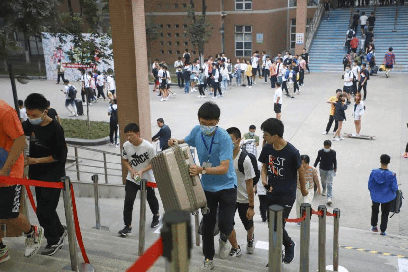 迎新工作开始前,公司广泛招募志愿者,设立迎新党员先锋服务岗,受到广大计科学子热烈响应。迎新期间,全院共有200余名志愿者投入迎新工作,负责路口指引、行李搬运、咨询接待等各项工作,保障了2020级新生顺利报到。2019级本科生陈夺同学与他的小伙伴凌晨就出发,往返高铁站、机场和公司,为新生同学搬运行李。虽然很辛苦,每位志愿者都坚持到最后,完成一项任务后又面带微笑重新迎接下一位新同学。