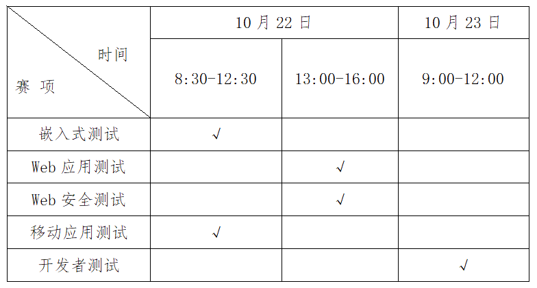 预选赛时间为10月22-23日。预选赛为互联网比赛形式,不限制比赛地点。参赛选手可任选赛项参赛,在时间不冲突的前提下可参加多个分项赛。