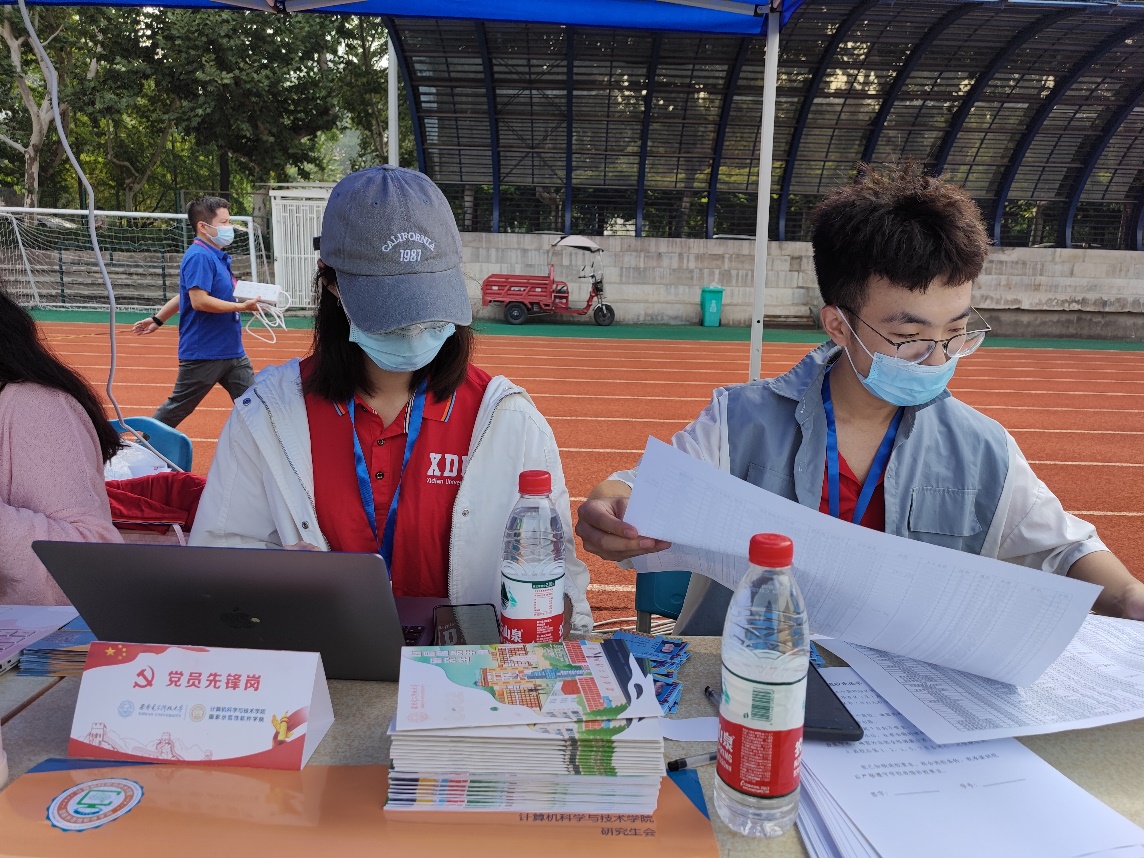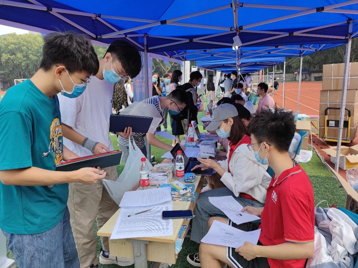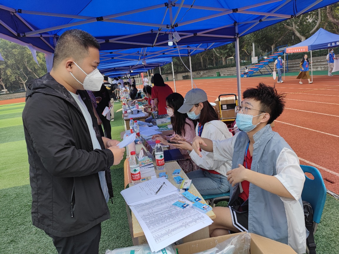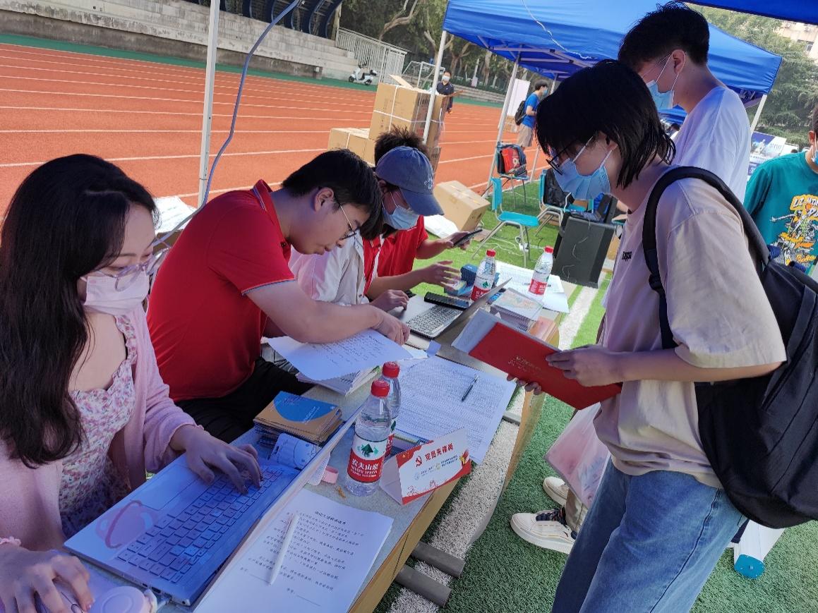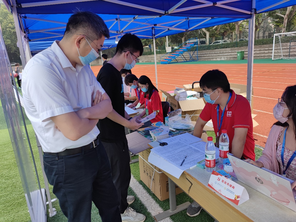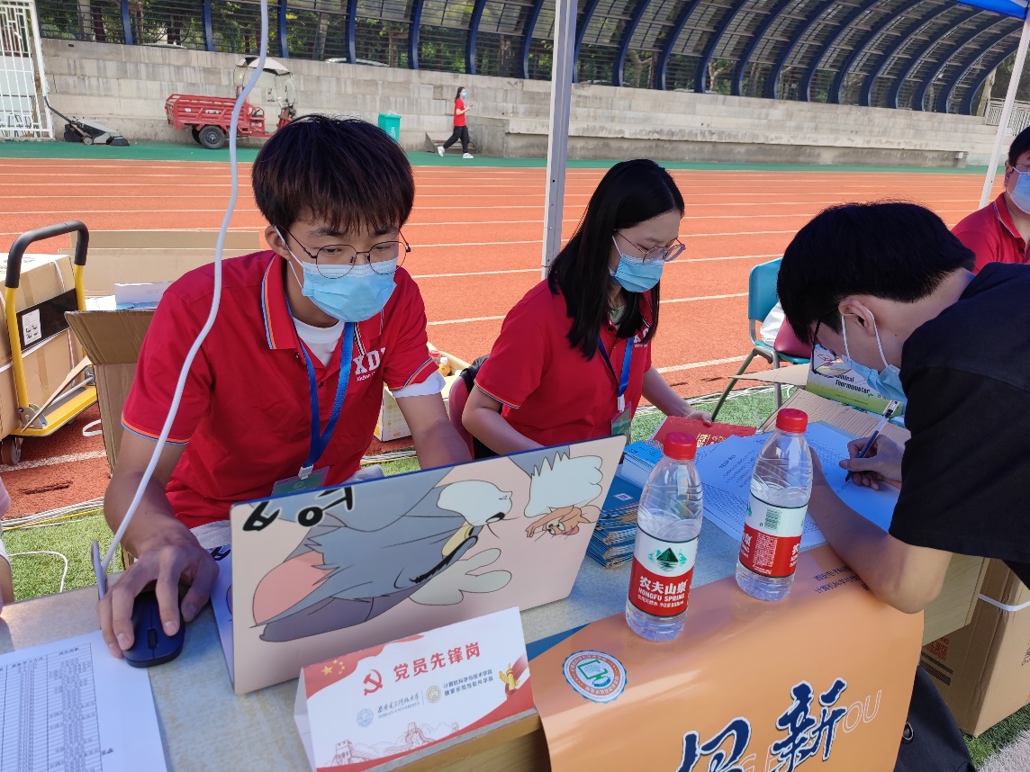 新生报到处,公司研究生辅导员、研究生会成员积极投入工作,公司还设立了迎新“党员先锋岗”发挥模范带头作用,确保疫情防控下的迎新工作顺利、有序进行。志愿者学长学姐们耐心引导新生完成报到流程,为大家发放研究生校园服务手册和口罩、体温计、不锈钢餐盒等爱心礼包,并热情的介绍校园环境。