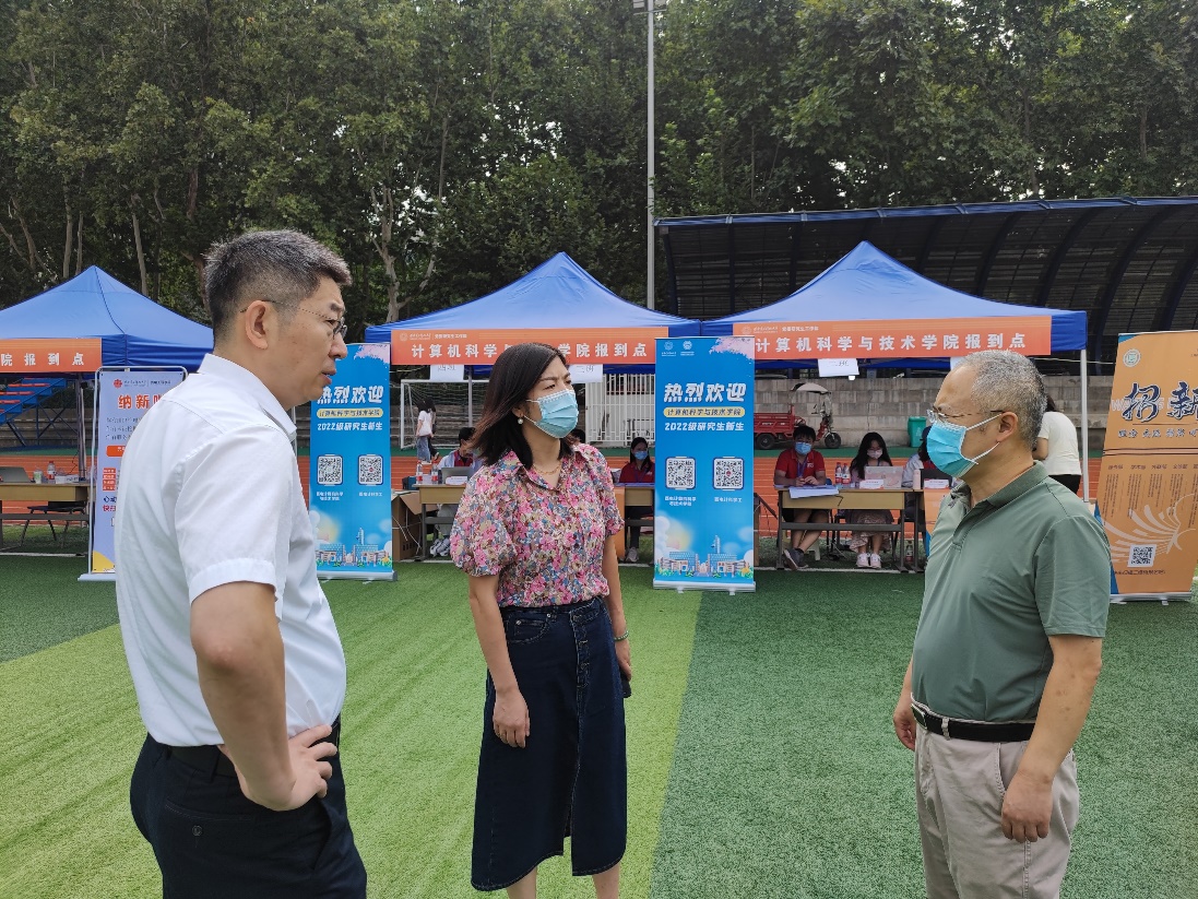 报到期间,公司、公司领导来到新生报到处,看望2022级研究生新同学,慰问参与迎新工作的师生员工。“从哪里来?一路辛苦了!”“务必做好疫情防护工作,照顾好自己!”“志愿者们辛苦了!”领导们关切的询问新生返校情况,并送上了亲切的问候。