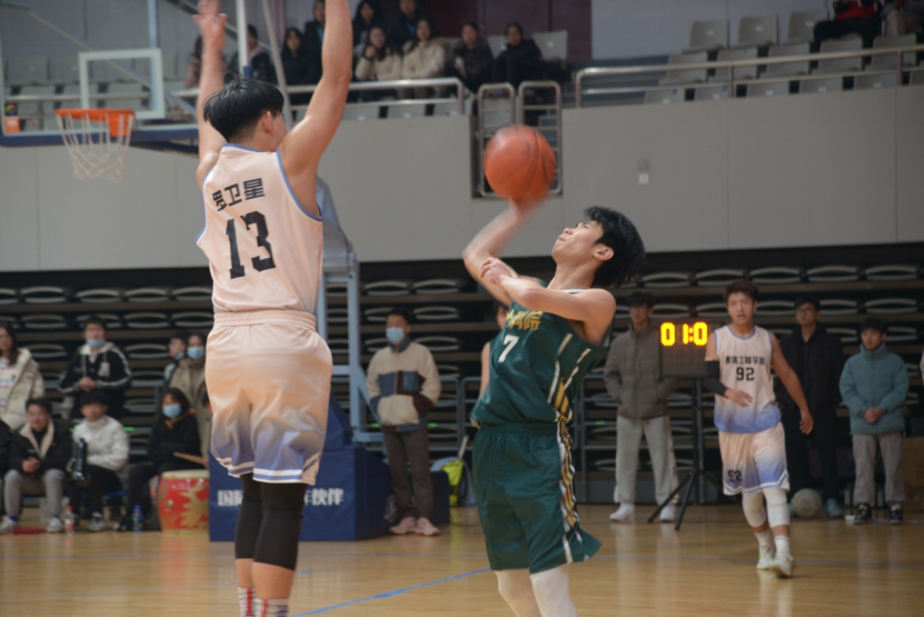 作为卫冕冠军的计科男篮队在决赛中以64:74惜败老对手通院队,获得亚军,但小伙子们精湛的技术和团结拼搏、永不言败的精神获得了全场的尊敬和掌声。比赛开场队员们就打出了一波漂亮的攻势,吉柯宇施展“大风车”秀翻全场,贾志玺、张凯歌制霸篮板,以21:13领先对手结束第一节。比赛进入第二节后双方你追我赶,对方逐渐找到手感、反超比分,半场以35:39结束。第三节开始双方体能均有所下降,彭骁晗外场突围、俞楷关键时刻三分命中,带领全队以56:58紧紧咬住对手。最后一节两队展开了激烈的对抗,我方队员接连负伤下场休息,替补队员们顽强追赶比分,奋战到最后一刻。队员的精彩表现赢得了全场的喝彩与掌声。