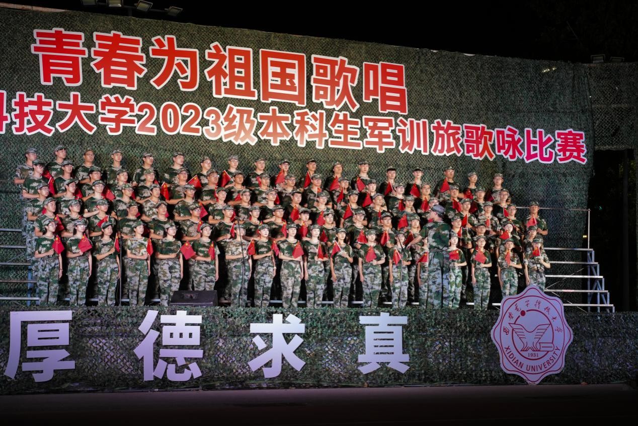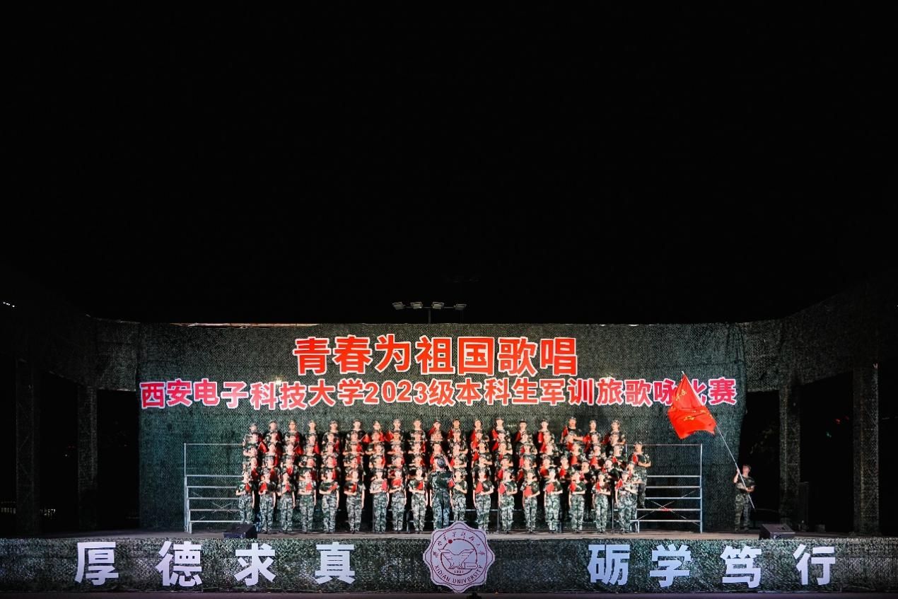 (通讯员 叶若兰 王薇)丹桂飘香,秋风送爽,青春正好,军歌悠扬。9月4日晚,2023级本科生军训旅歌咏比赛在南校区南操场拉开帷幕。2023级军训旅歌咏比赛以“青春为祖国献唱”为主题,将青春豪情融入歌曲,让爱国热忱渗透旋律,旨在传承弘扬爱国主义精神,展现西电青年踔厉前行、报效祖国的拳拳之心。BB贝博艾弗森在此次歌咏比赛中,以《通信工程公司校歌》《人民军队忠于党》两首歌曲的精彩演绎斩获总分第2名的优异成绩!