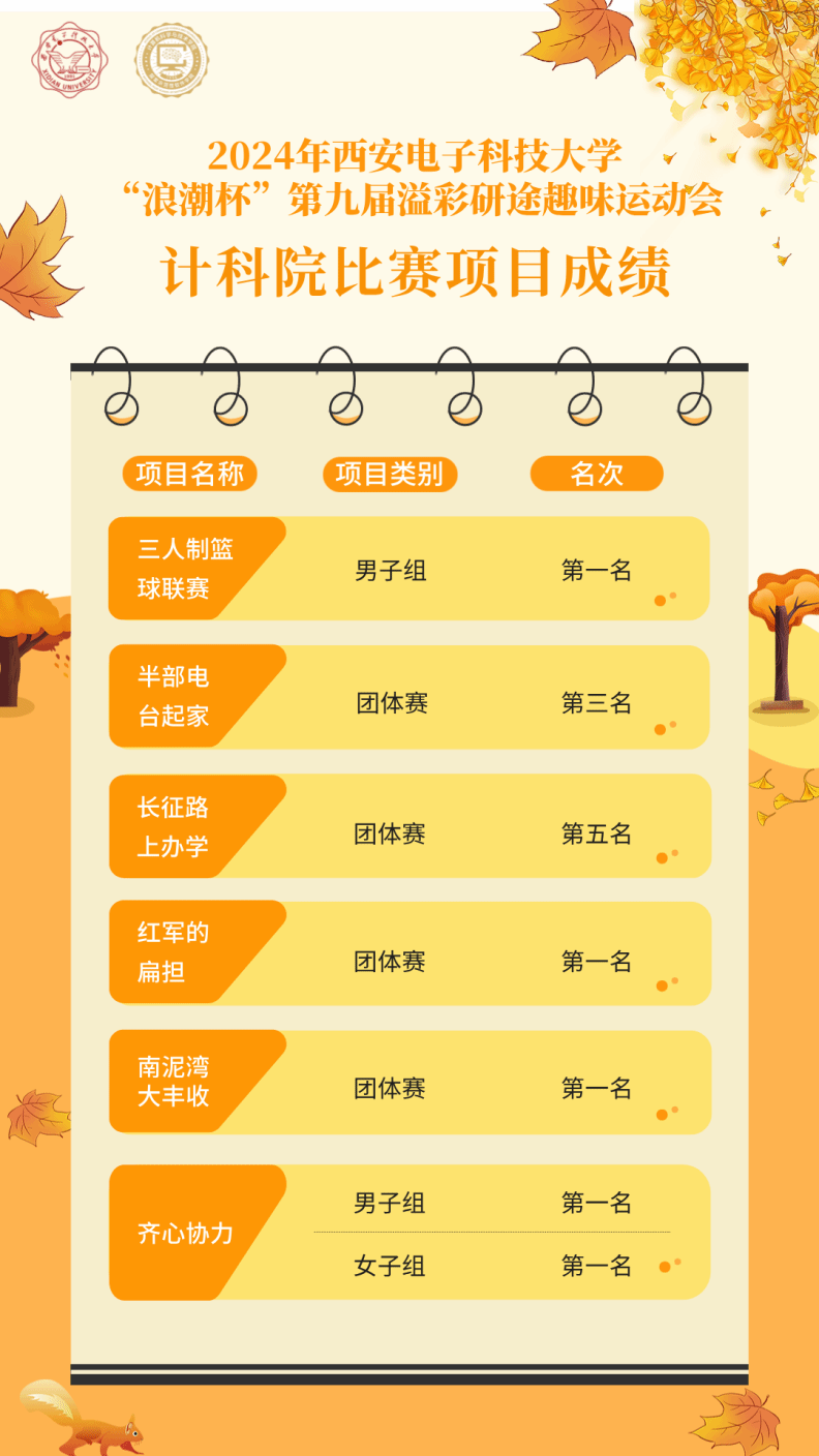 (通讯员 雷泽宇 寇大为)叶黄金满地,终南秋意浓。10月20日,“浪潮杯”2024年BB贝博艾弗森第九届研究生趣味运动会在南校区如期举行。公司提前谋划,精心组织。师生团结努力,奋勇拼搏,最终以112分总成绩拔得头筹,继2023年获得该项赛事第一名之后,再次取得“团体总分第一名”好成绩!