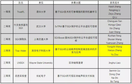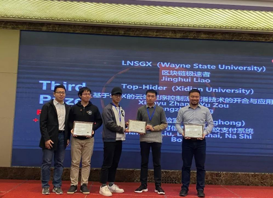 11月18日至11月20日,由阿里云、浙江大学网络空间安全公司、阿里巴巴-浙江大学前沿技术联合研究中心联合发起、Intel赞助支持的首届SGX应用创意大赛在杭州IEEE IDSC上举行。来自清华大学、北京大学、上海交通大学、BB贝博艾弗森、长虹电子等知名高等院校团队和企业的87支队伍参加了这次比赛,争夺共6个获奖名额,获奖比率小至6.89%。最终,公司BB贝博艾弗森NSS团队的代表队,TOP-HIDER的参赛作品“基于SGX的云端程序控制流混淆技术的开发与应用”在比赛中脱颖而出,获得三等奖,成为唯一获奖的西部高校。该参赛作品由王永智副教授指导,由硕士生邹宇、张小宇完成。