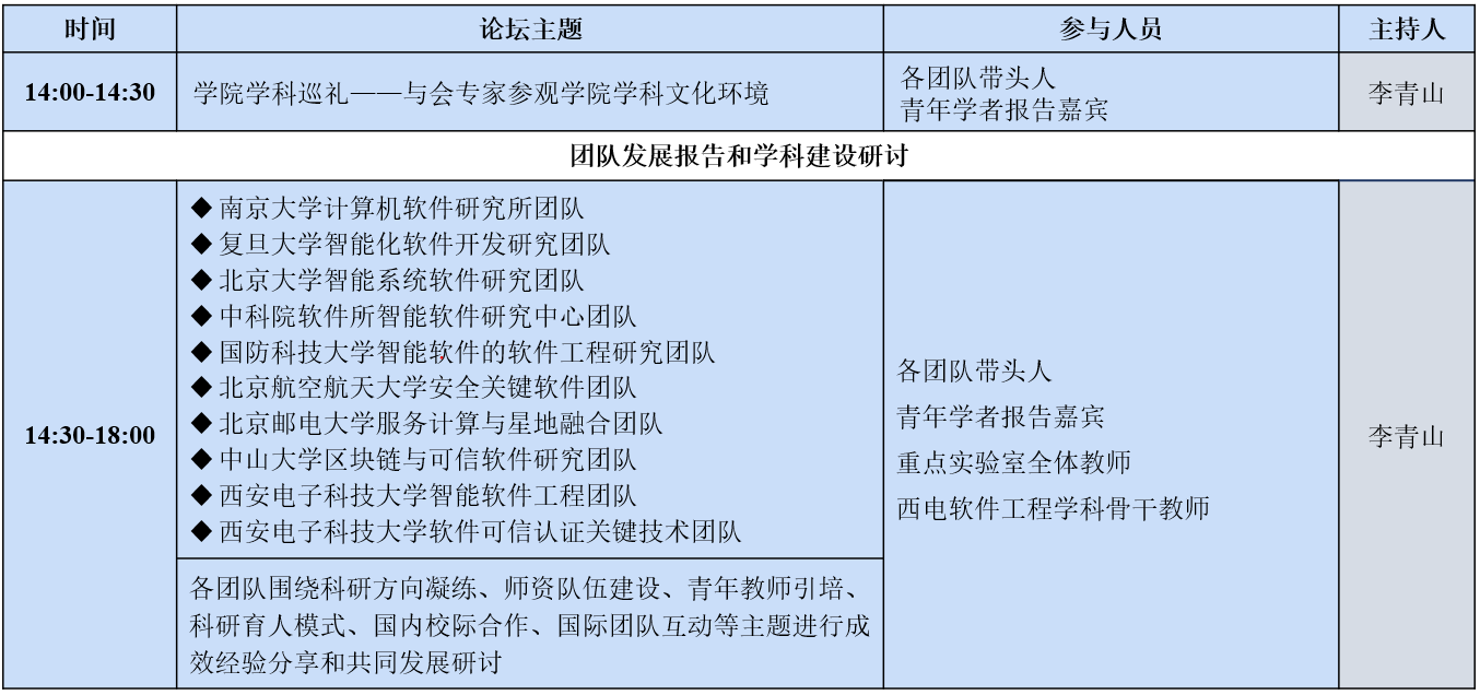 第四届软件工程学术进展与团队建设研讨会暨2023年重点实验室青年学者论坛将于2023年11月24日~25日在BB贝博艾弗森南校区举办。由依托BB贝博艾弗森(示范性软件公司)建设的西安市智能软件工程重点实验室(陕西省智能软件工程创新团队)和西安市软件可信认证关键技术重点实验室(陕西省安全攸关智能软件创新团队)联合承办。本届论坛在往届举办经验的基础上,创新论坛模式,以软件工程和系统软件领域校际学科科研团队的交流融通和资源共享为切入点,采用青年学者学术进展专题报告与团队组织建设论坛相结合的组织模式展开,以更好地推进有组织的团队建设、有组织的科研和有组织的团队建设成果交流和共同发展。论坛邀请了包括北京大学、南京大学、复旦大学、中国科公司软件研究所、国防科技大学、北京航空航天大学、北京邮电大学、中山大学等软件工程和系统软件领域国内有代表性有特色有优势的学科和科研团队与公司软件工程学科相关团队一起进行交流和研讨。青年学者论坛将主要以专题报告的形式带来学术前沿研究进展和成果分享;学科论坛中各团队带头人或代表将结合各自所在公司和学科特色,分享其所指导的团队在科研方向凝练、团队队伍建设、青年教师引培、科研育人模式、国内校际合作、国际团队互动等主题进行成效经验分享和共同发展研讨。
