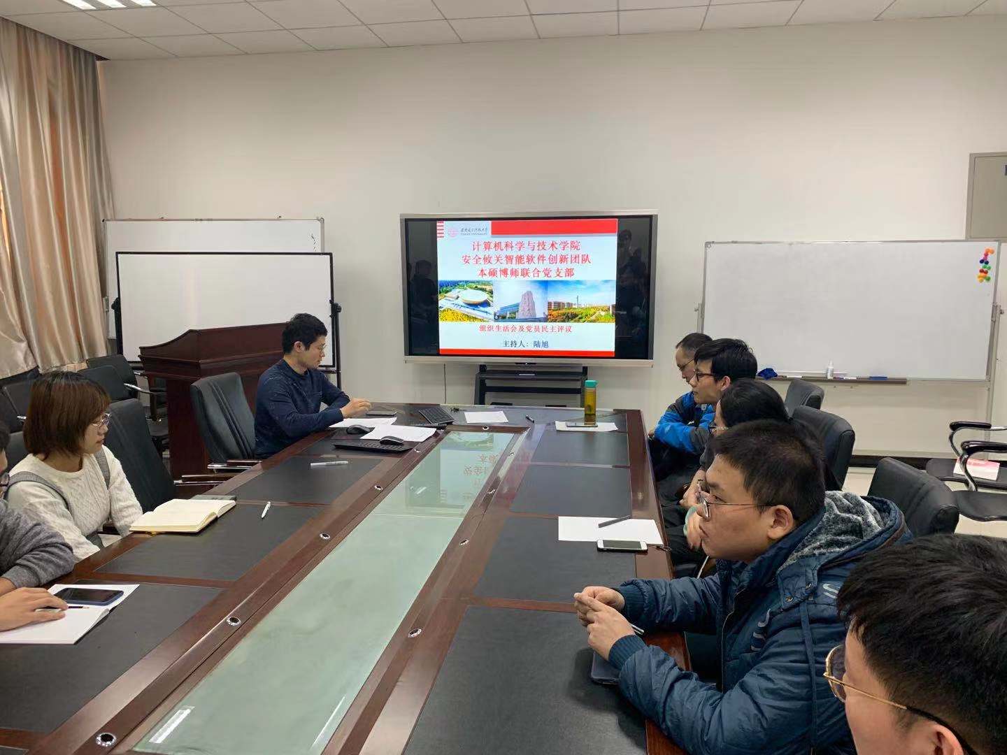 (通讯员 郭佳琦)2019年12月5日下午,为贯彻公司党委关于基层党支部组织生活会和开展民主评议党员工作部署,BB贝博艾弗森安全攸关智能软件创新团队本硕博师联合党支部在主楼四区203会议室,召开支部组织生活会并开展民主评议党员。党支部书记陆旭主持了本次会议,公司纪委委员、计算机科学系主任王小兵参加会议并进行总结发言。