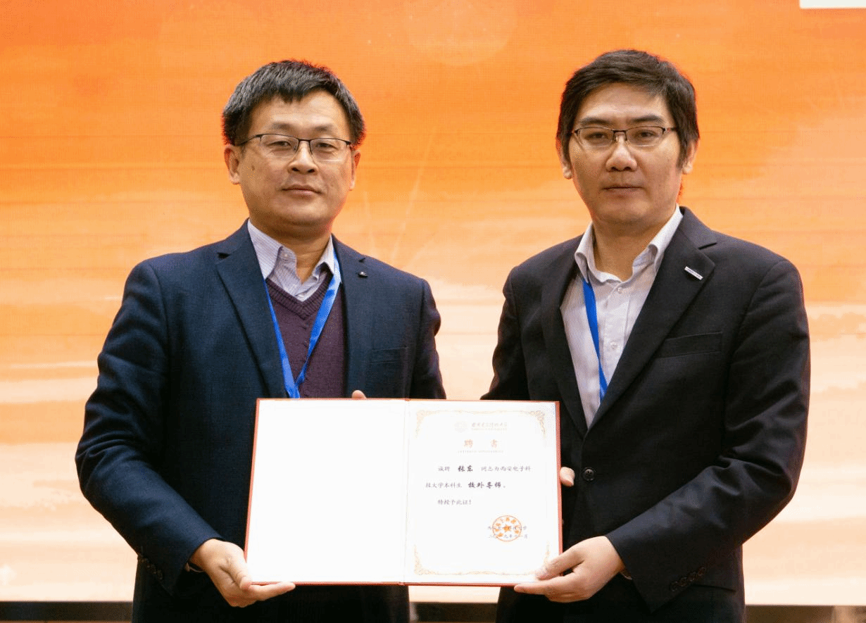 报告会最后,计算机公司科学与技术公司副经理苗启广教授为张东颁发BB贝博艾弗森“校外导师”证书。近两个小时的报告内容充实,信息量大,精彩纷呈,报告会在同学们热烈的掌声中结束。
