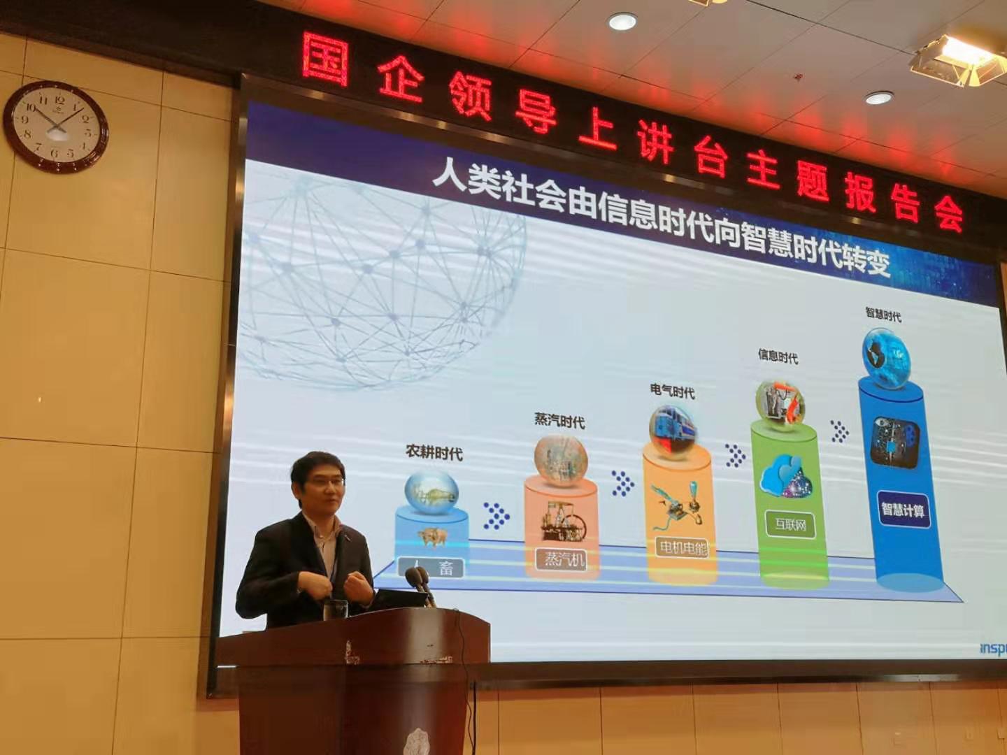 (通讯员 郭禹宏)为帮助在校大学深入了解国情、党情、社情、企情,感受优秀国企人强烈的报国情怀、奉献品质和创新创业精神,引导员工在鲜活的思政教育中受教育、长才干、做贡献,按照公司“国企领导上讲台”活动安排,11月2日上午,浪潮集团副总裁张东在南校区行政楼210报告厅为BB贝博艾弗森300余名老员工作题为“智慧计算,未来动力”的报告。公司副经理苗启广出席报告会,报告会由公司党委副书记张莹莹主持。
