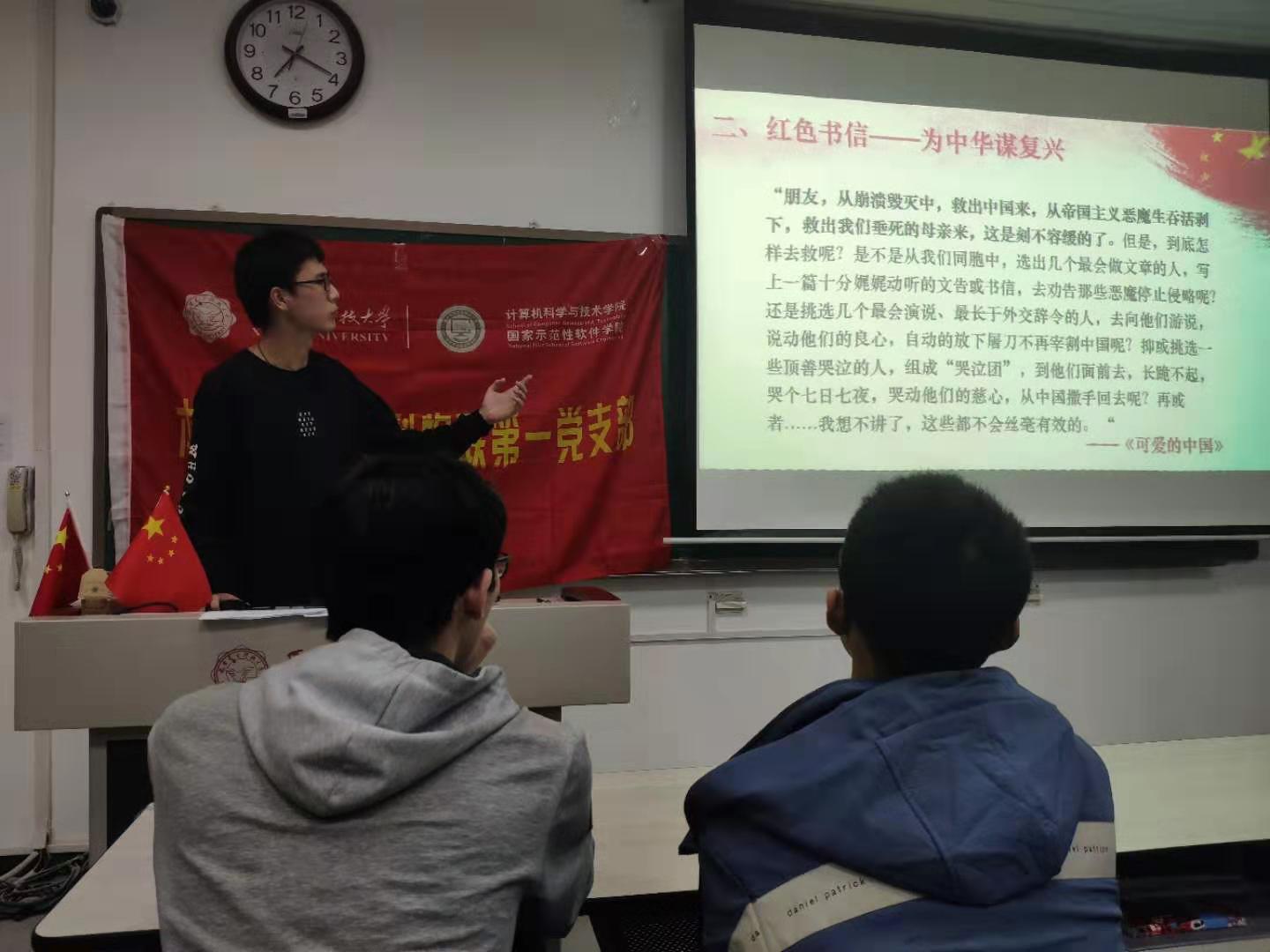 (通讯员 翟恋 徐聪)为感受共产党创业的筚路蓝缕,品鉴从风雨飘摇时代到现在的社会变迁,2019年11月3日晚,BB贝博艾弗森本科2016级计科物联第一党支部在C楼324教室开展了“红色文化读物交流”主题党日活动,2016级辅导员郭禹宏老师及20余名支部成员参加了活动。