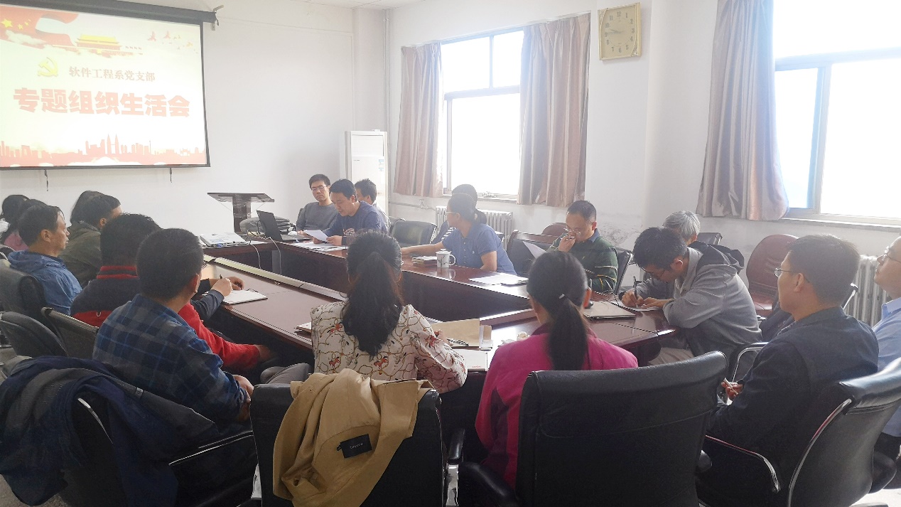 宋胜利首先介绍了软件工程系党支部专题组织生活会准备情况。第一阶段,组织全体党员集体学习,扎实做好会前准备工作。具体学习内容包括党章党规、《“不忘初心、牢记使命”主题教育最全应知应会知识》、《习近平关于全面从严治党的重要论述摘编》等材料;组织支部全体党员集体学习公司纪委办公室印发的“8∙19”案件剖析材料——《“前腐后继”的权欲悲剧》。