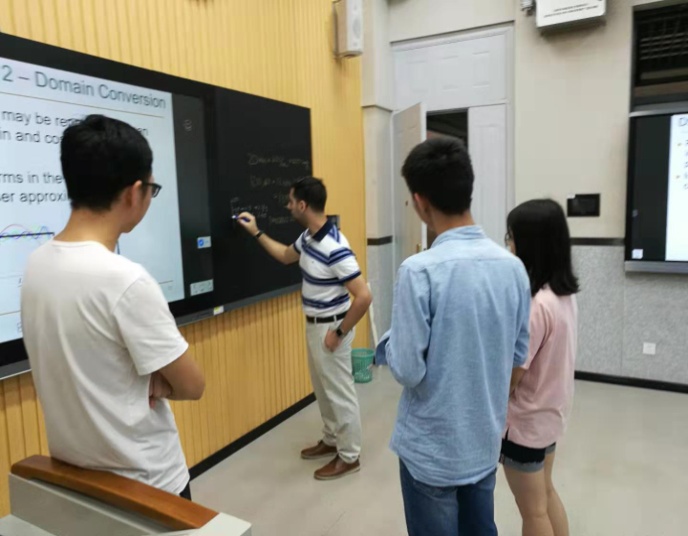 为顺利实施2019年国际双创实践周活动,西电BB贝博艾弗森从美国知名高校引进5门国际化课程。其中包括《植入式传感器简介(Introduction to implantable sensors)》,该课程由BB贝博艾弗森贾广教授负责引进,美国南佛罗里达大学Robert Karam教授亲自授课。本门课程由孙鹏岗老师担任校内助教,协助Robert Karam教授授课。