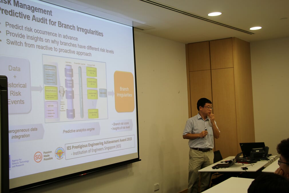23日下午,在新加坡科技研究局,来自Neph Tech的王圣啸博士向同学们作了题为“Provider of a User-Centric Blood Vessel Surveillance Programme for Dialysis Centres”的报告,重点讲解了他们公司自主研发的一款基于人工智能技术开发的,能够有效监测血管壁厚度的产品原理并分享其开发经验与经历,使同学们了解了人工智能产品开发过程中的艰辛。来自中新智擎的Huang Wei Bo博士向同学们讲述了机器人产业的应用现状和技术架构,分享了自己在企业创新过程中的经验。“智能机器人的最后,依旧是取决于AI技术的发展。”在介绍完机器人产业的现状之后,黄巍伟博士又引领同学们展望了AI技术在机器人产业的应用前景。黄巍伟博士的总结激发了同学们对AI技术的学习兴趣。