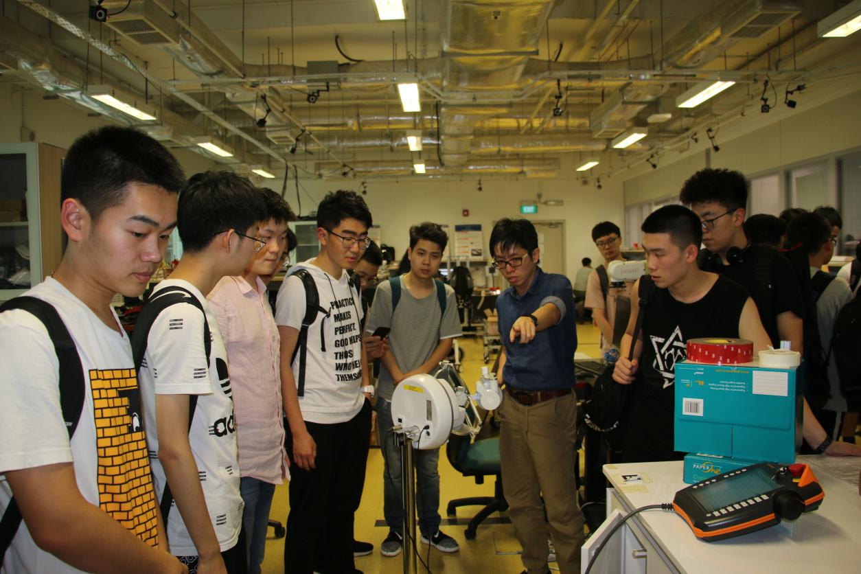 在听完教授们的报告后,同学们已迫不及待想与机器人进行亲密接触。在新加坡国立大学的机器人实验室,同学们接触到了最新的各式机器人,如自动驾驶机器人、握手机器人和由气压控制改变形态的充气机械臂等。前些年大热电影《超能陆战队》中的大白机器人,也是其导演在参观实验室后受充气机器臂的启发而诞生的,在实验室博士生的深入介绍下,同学们对机器人的工作原理有了深入的了解,同时也体会了机器学习等人工智能技术在机器人领域的应用情况。