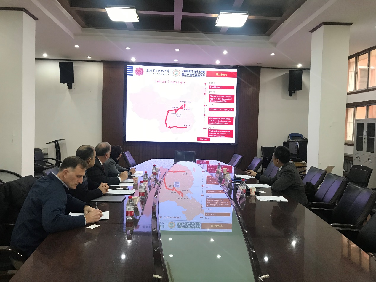 Kevin Truman首先对西电的热情接待表示了感谢,并对西电在过去两年中取得的成就表示了祝贺。Kevin Truman表示密苏里大学堪萨斯分校近几年也在不断扩大公司招生规模、增加科研项目和支持创新创业发展,他提到此次一同来访西电的还有计算机和工程公司的两位教授,这两位教授的研究成果已被阿里巴巴蚂蚁金服收购,且两位教授也分别在蚂蚁金服担任首席技术执行官和研发主任,此类公司对专业技术能力优秀且熟悉中美语言文化的人才需求很大,他希望以此为契机和西电在全球人才培养方面开展合作。