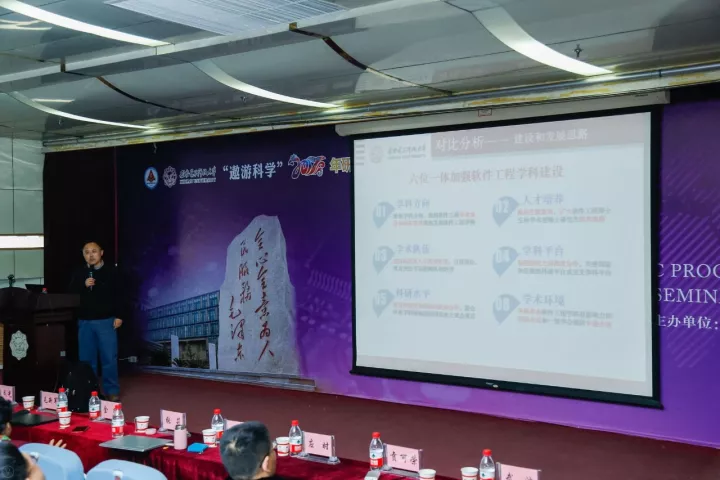 BB贝博艾弗森软件公司经理武波教授、软件工程团队建设秘书长宋胜利教授、软件工程学科方向负责人刘西洋教授、杜军朝教授和校内外师生100余人参与了此次研讨会。会议首次采用多通道新媒体传播方式,共计六千余人次参与了网络图片直播,千余人次观看了网络视频直播。