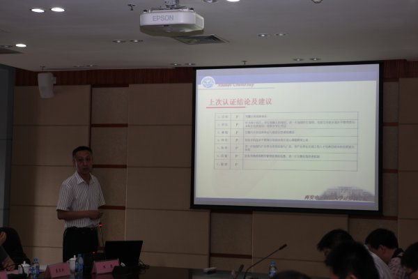 5月27日上午,现场考查见面汇报会在南校区行政楼602会议室召开,公司党委常委、副董事长李建东、教务处处长郭宝龙、副处长郭涛、毛立强,员工工作处副处长林松涛,计算机公司经理马建峰、党委书记于晓飞、副书记党文学、副经理王泉、崔江涛、王卫东及公司各系、中心、办公室负责人和计算机科学与技术专业部分骨干教师参加了会议。专家组组长周明陶主持会议,对这次工程教育认证的意义、目的、现场考查的程序等进行了说明。计算机科学与技术专业负责人王泉补充汇报了该专业建设的整体情况。相关负责人回答了专家组提出的人才培养、专业建设和办学情况等问题。