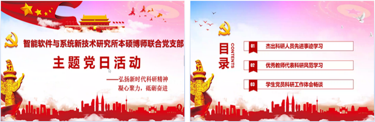 (通讯员 赵海洋)2020年3月27日下午,智能软件与系统新技术研究所本硕博师联合党支部开展了主题为“弘扬新时代科研精神”的线上主题党日活动。本次活动邀请了计算机科学与技术公司党委书记、智能软件与系统新技术研究所所长李青山老师,软件工程系主任、软件工程系党支部书记宋胜利老师,以及产教协同基地本硕博师第一联合党支部书记、智能软件与系统新技术研究所副所长李瑞老师参加。活动由支部书记王璐老师主持。