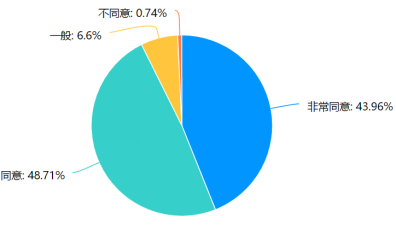 通过上图可以看出,60%的员工认为,疫情结束之后,可将20%以上的课程内容采用线上教学模式,这为以后的教学改革提供了思路。