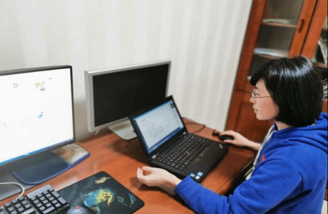 两位老师分工合作,协同教学,这是线上教学的一大创新性探索,当然也正是线上教学自身的优势所在——不受限于教室人数的限制。在减少工作量的同时,提高效率和产出,一位老师主讲,一位老师负责沟通交流,成功地达成了高效率、高产出、全覆盖的教学改革模式。